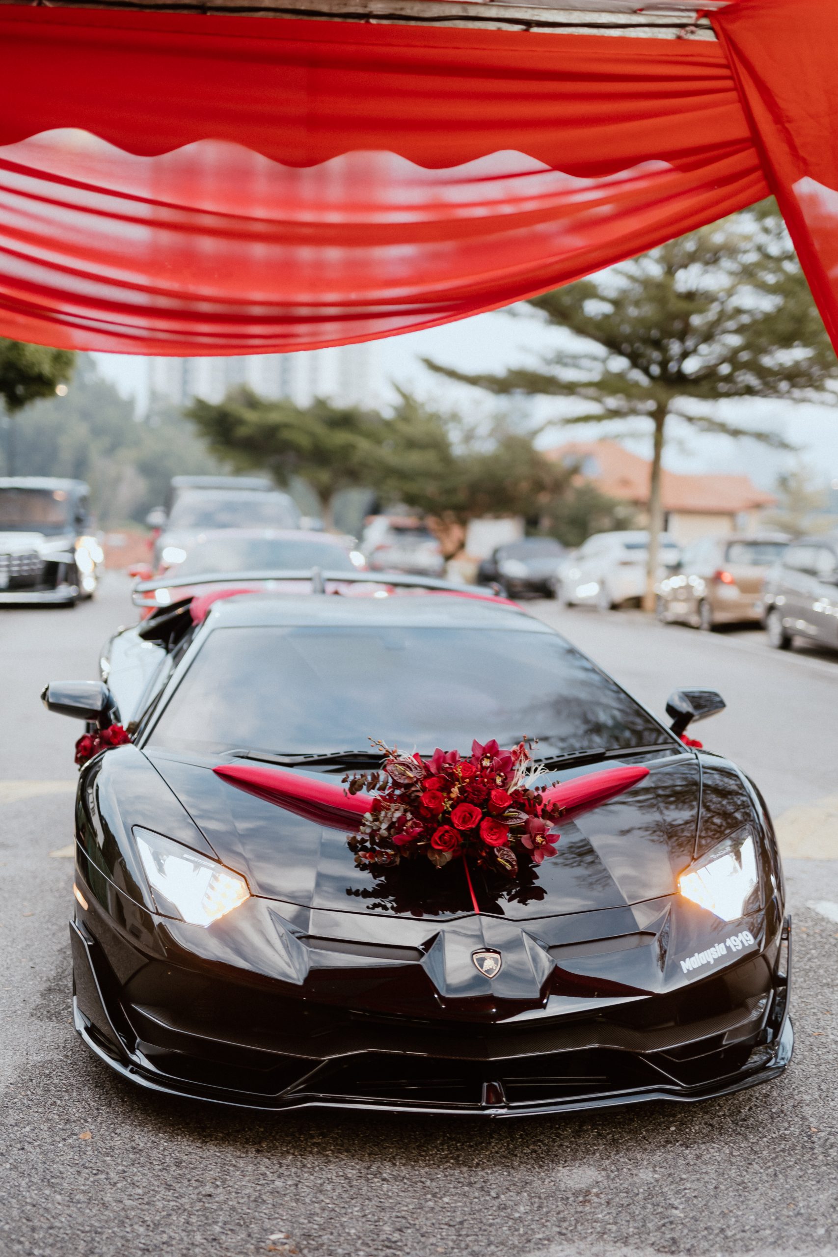 The fetch the bride ceremony (迎亲, yíng qīn) is a lively event where the groom arrives at the bride’s house to escort her to the wedding venue. This procession is often accompanied by firecrackers, lion dances, and a band playing traditional music, creating a festive atmosphere. The groom may also carry a bouquet of flowers, symbolizing his love and commitment. The bride, dressed in her beautiful wedding gown, is escorted to the groom's car, and the journey to the wedding venue begins, often with much fanfare and celebration.